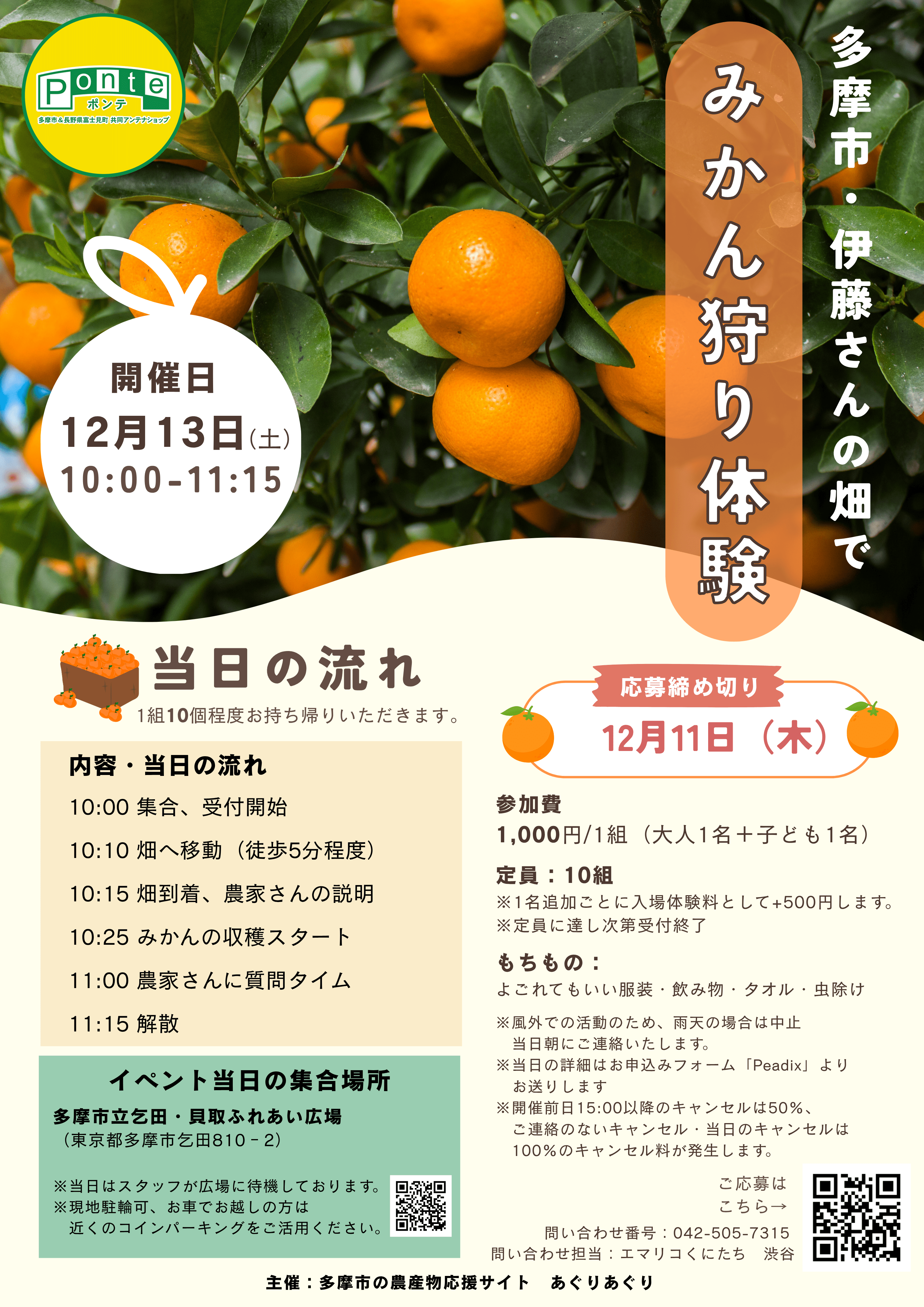 みかんの収穫体験!多摩市の伊藤さんのみかん畑は坂を登った先の高台にあり、日当たりの良い南向き。