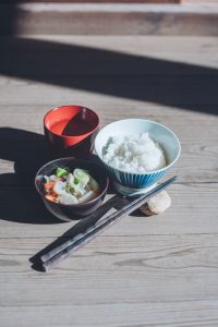 多摩市産新米の炊きたてご飯と、旬の多摩野菜を入れた豚汁をご用意します。