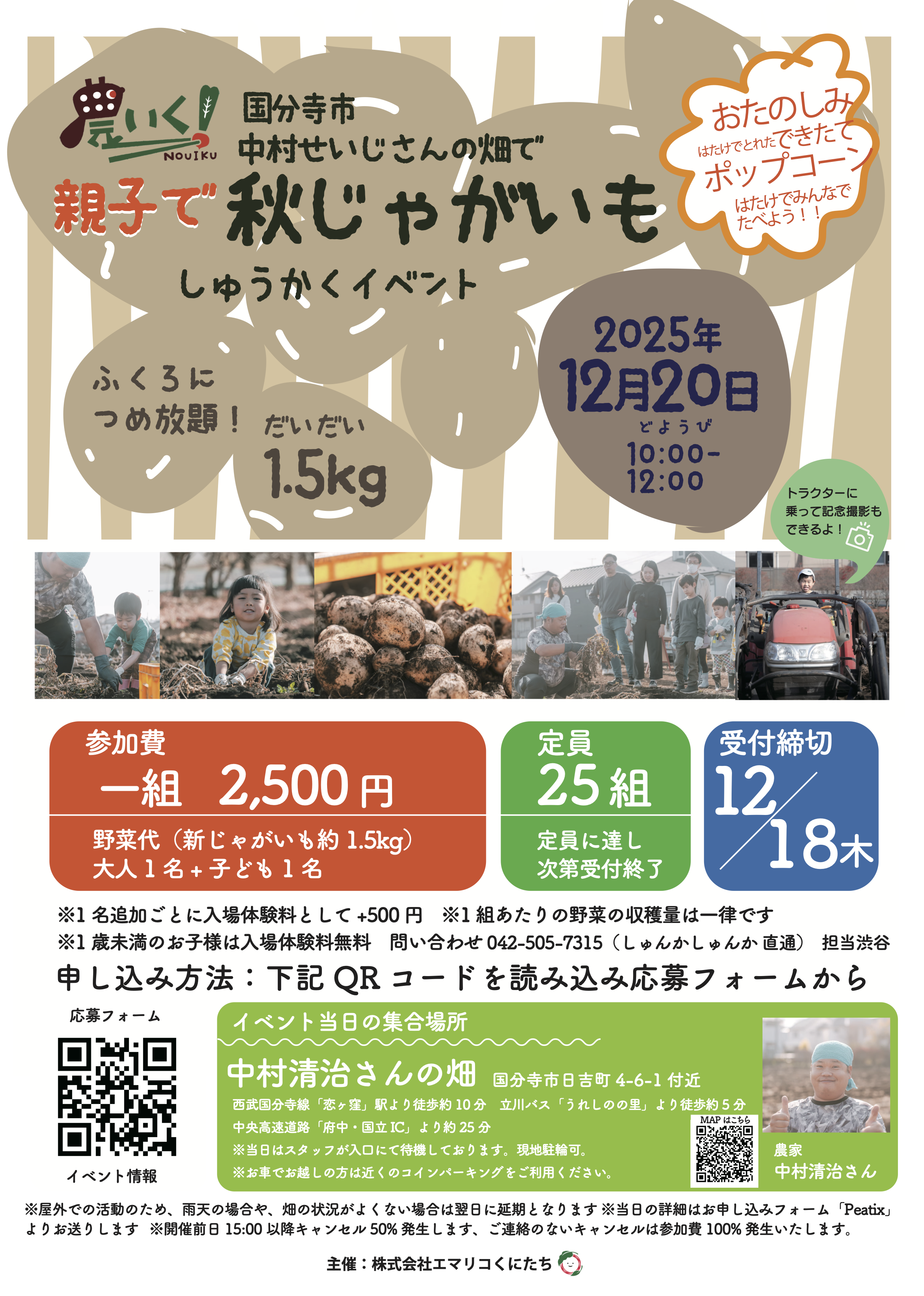 今年最後の農いく!となる1dayイベントのお知らせです。