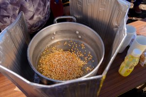 ポンポン弾ける音を聞きながら、みんなで出来たてホカホカのポップコーンを味わおう☆
